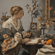 Πορτρέτο καλλιτέχνιδας με καπέλο και πινέλα, εμπνευσμένο από σημαντικούς καινοτόμους στην τέχνη.